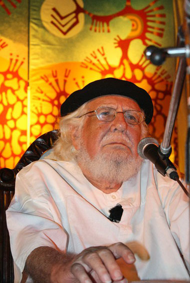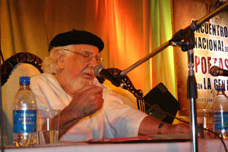 Ernesto Cardenal frente a un auditorio maravillado ante sus poemas amerindios, conectados con las ciencias de la Tierra y el nuevo paradigma ecológico.