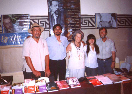 Miguel Vera, Miguel Hernández, Dora Giannoni, la Maga y Sergio Avasolo, en el stand de Patria Grande en el Encuentro de Poetas.