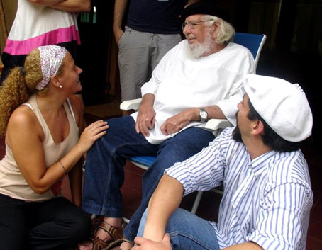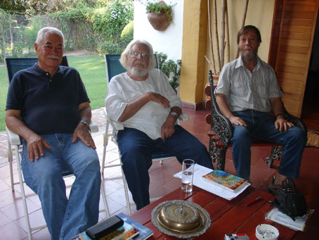 Ernesto Cardenal junto a William Agudelo y Sergio Avasolo.